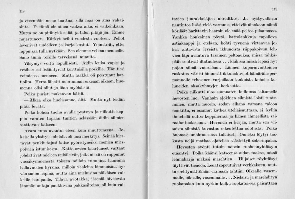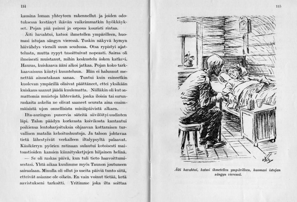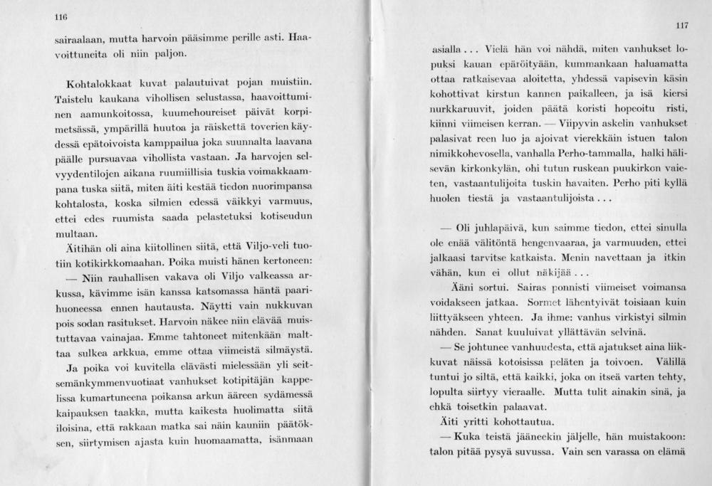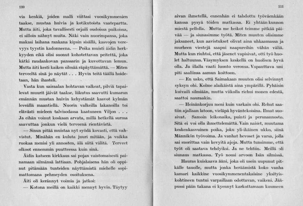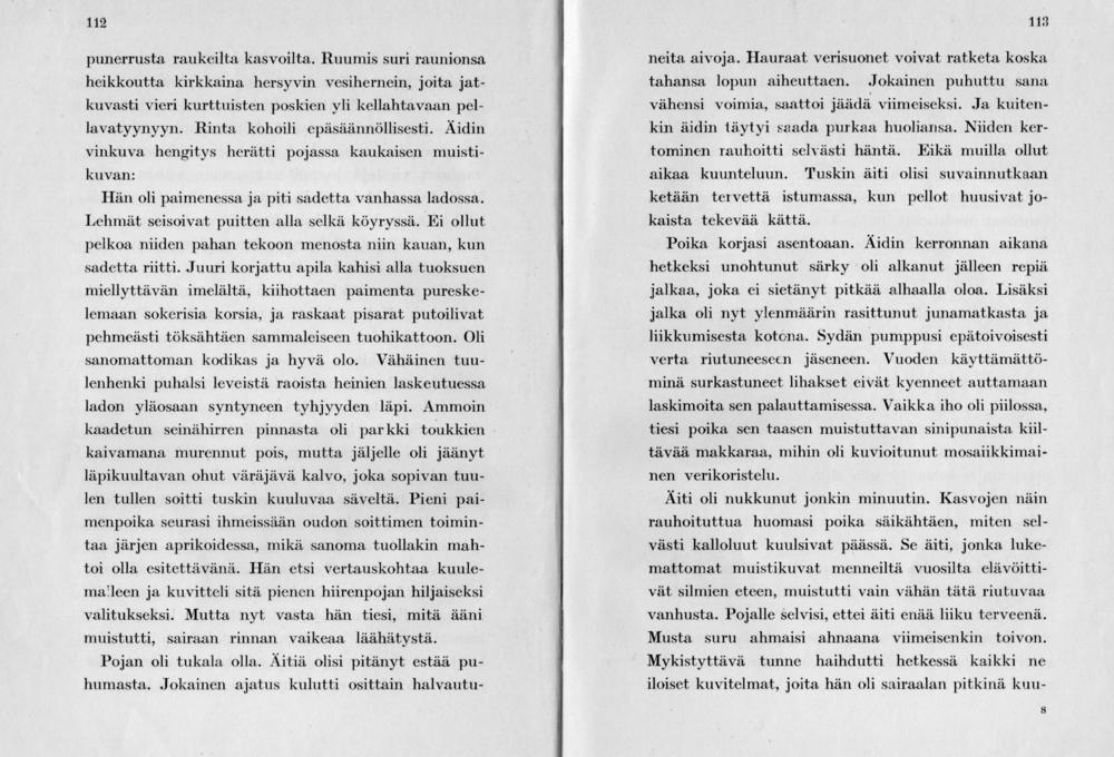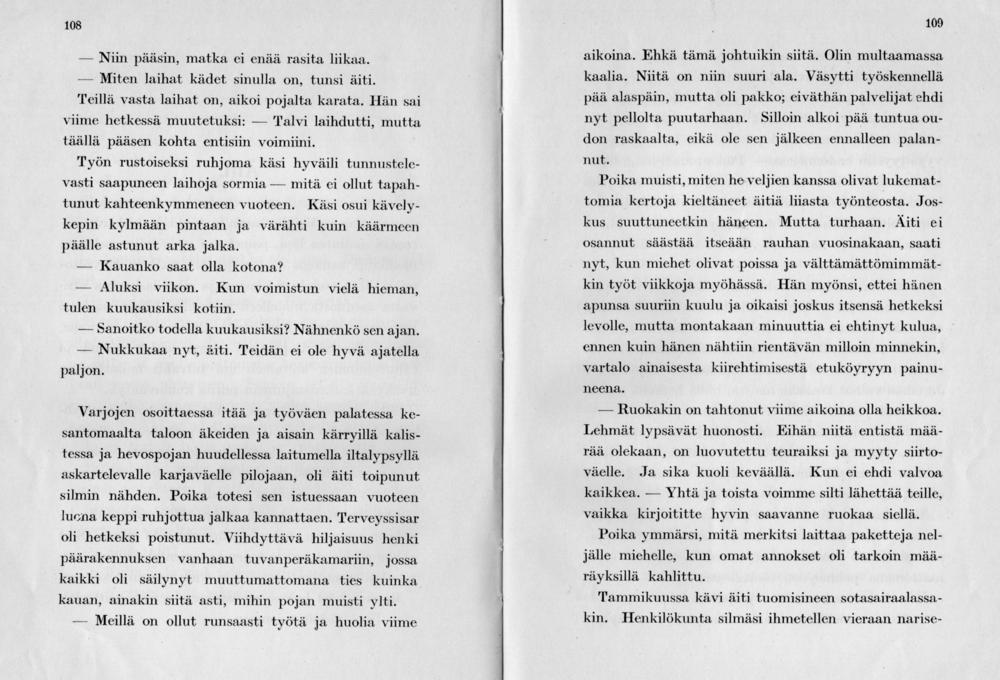 Olen valinnut kirjasta tähän kertomuksen "Äiti", jossa Eino kertoo hyvin kauniilla ja herkällä tavalla käynnistään äitinsä Hilman sairasvuoteen äärellä sekä itsestään että Männistöstä.